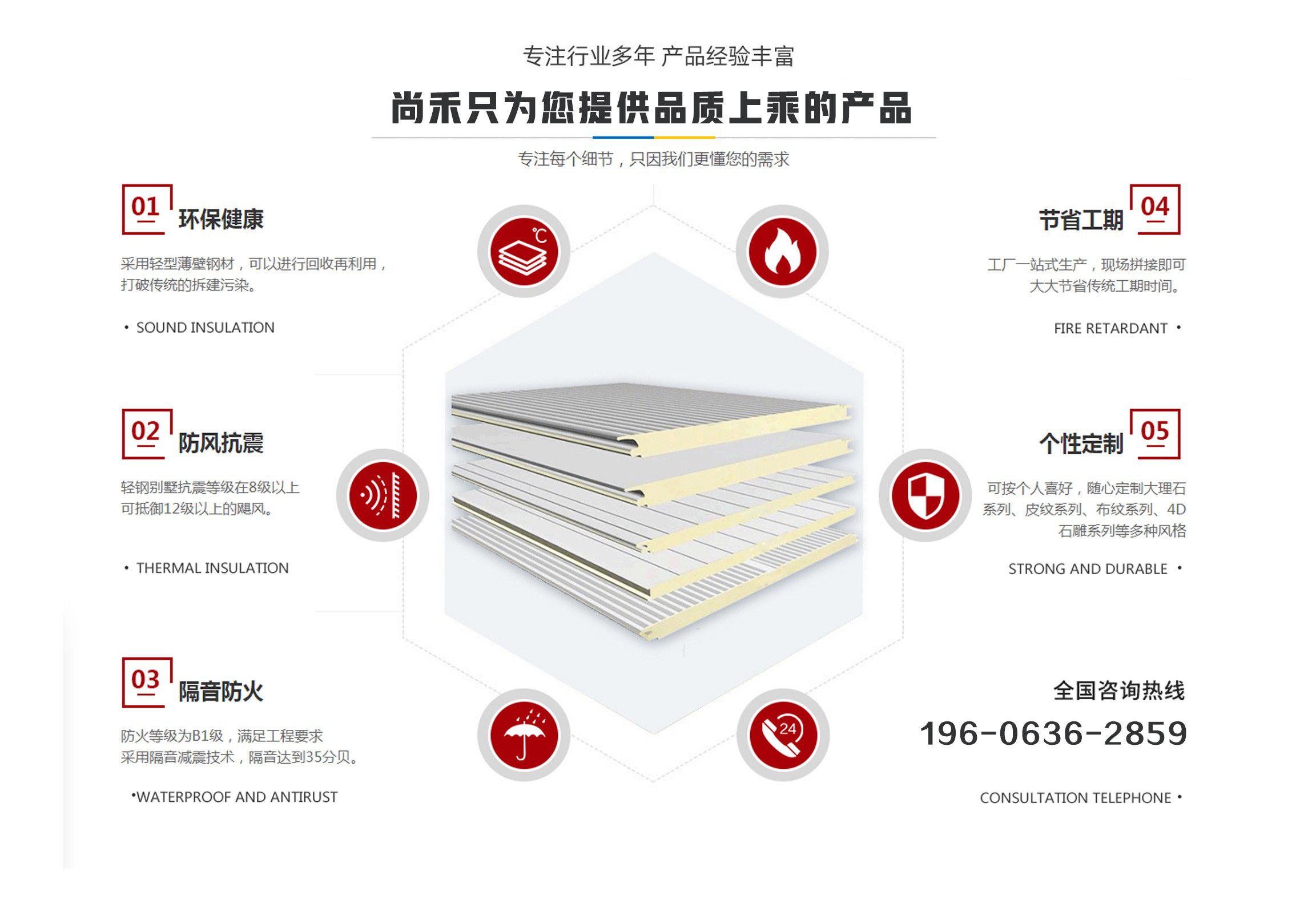 山東尚禾經(jīng)貿(mào)有限公司是集板材設(shè)計(jì)、研發(fā)、生產(chǎn)、施工、一體化的科技公司,并在同行業(yè)中率先通過(guò)了質(zhì)量、環(huán)境、安全管理體系認(rèn)證。公司2011年投入資金2000余萬(wàn)元引進(jìn)世界先進(jìn)的聚氨酯節(jié)能板連續(xù)生產(chǎn)線、意大利進(jìn)口發(fā)泡系統(tǒng),采用六組份在線自動(dòng)操作混合澆注技術(shù),在線一次性完成社會(huì)配料中心或工廠的配比混合工藝,并可以根據(jù)溫度在線自動(dòng)調(diào)整,從而生產(chǎn)處與眾不同的高強(qiáng)度、節(jié)能型、綠色環(huán)保的聚氨酯夾芯板。(其使用年限高于同行業(yè)其他品牌5-10年)  公司主要經(jīng)營(yíng)范圍包括聚氨酯夾芯板,PU夾芯板,冷庫(kù)板,潔凈板,聚氨酯冷庫(kù)板,冷庫(kù)保溫板的設(shè)計(jì)、生產(chǎn)、銷售、技術(shù)指導(dǎo)、安裝及一體、以及進(jìn)出口業(yè)務(wù),是中部六省最大的綠色節(jié)能建材生產(chǎn)基地。聚氨酯夾芯板年產(chǎn)200萬(wàn)平方米、PU夾芯板、冷庫(kù)保溫板500萬(wàn)平方米、鏈整產(chǎn)業(yè)綜合實(shí)力,開(kāi)創(chuàng)了六省至中西部創(chuàng)新型中小名企總部基地,并將著力推進(jìn)中國(guó)中西部地區(qū)集成房屋住宅產(chǎn)業(yè)化發(fā)展進(jìn)程。  科技創(chuàng)新、節(jié)能典范。千萬(wàn)間始終秉承“誠(chéng)信、合作”的企業(yè)文化精髓,長(zhǎng)期致力于鋼板材結(jié)構(gòu)節(jié)能建筑產(chǎn)業(yè),愿與社會(huì)各界攜手合作,共鑄綠色、環(huán)保美好未來(lái)。 產(chǎn)品具有良好的絕熱、阻燃、隔音、環(huán)保、耐久性能,可廣泛應(yīng)用于工業(yè)、商用建筑內(nèi)外墻、以及民用建筑外墻保溫、空調(diào)通風(fēng)系統(tǒng)、專用防火保溫門等領(lǐng)域。  我們始終秉承...